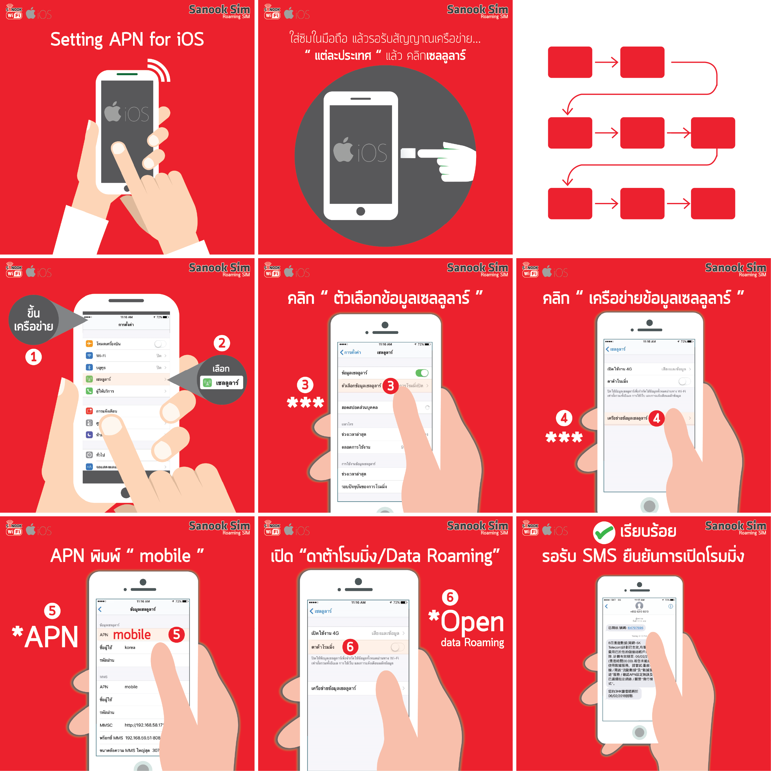 สำหรับผู้ใช้ระบบ iOS เมื่อ ใส่ซิมในมือถือเรียบร้อยแล้ว ปิดวายฟาย แล้วเปิดเซลลูลาร์ (iOS) ซิมจะ Auto Activated และใช้เล่นอินเตอร์เน็ตได้ทันที หากใช้ไม่ได้ ให้ตั้งค่า APN